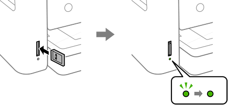 Imprimanta începe să citească datele și indicatorul luminează intermitent.În momentul în care citirea s-a terminat, indicatorul nu va mai lumina intermitent, ci va rămâne aprins.