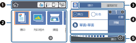 以圖示方式指示已針對印表機設定的項目。選取此圖示可查看目前的設定或存取各設定功能表。