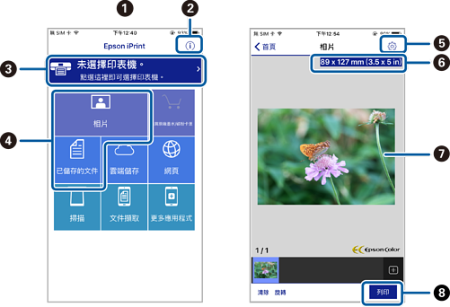從智慧型裝置啟動 Epson iPrint,並從主畫面選取您要使用的項目。