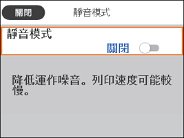 使用 鍵將焦點移到設定項目,然後按下 OK 鍵來開啟或關閉項目。