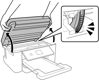 Åbn scannerenheden med begge hænder, indtil den låses.
