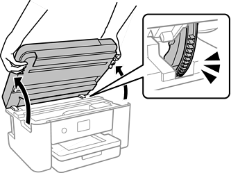 Abra la unidad del escáner con ambas manos hasta que quede bloqueada.