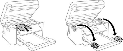 Raak nooit de knoppen van het bedieningspaneel aan als u met uw hand in de printer zit. Als de printer begint te werken, kunt u zich verwonden. Raak de uitstekende delen niet aan om verwondingen te voorkomen.