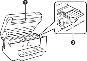 Goýlan originallary skanlaýar. Syýa kartrijlerini çalşyran ýa-da printeriň içindäki dykylan kagyzy aýran wagtyňyz açyň.