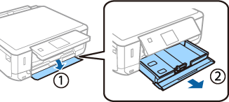 1 Öffnen Sie die vordere Abdeckung und ziehen Sie die Papierkassette heraus.
