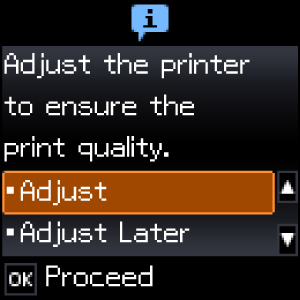 Assurez-vous que l'écran de réglage de l'imprimante pour garantir la qualité d'impression s'affiche sur l'écran de l'imprimante.