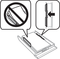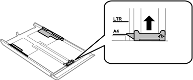 A4-nél hosszabb méretű papír esetén a papírt a kazetta végén lévő nyíl felé töltse be, és úgy töltse be, hogy kiálljon a kazettából. Ne nyomja be a papírt, ami kilóg a kazettából.