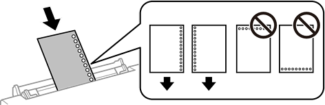 Töltsön a hátsó papíradagoló nyílás közepébe előre lyukasztott papírt a nyomtatható oldalával felfelé. Az élvezetőket csúsztassa az előre lyukasztott papír széleihez.