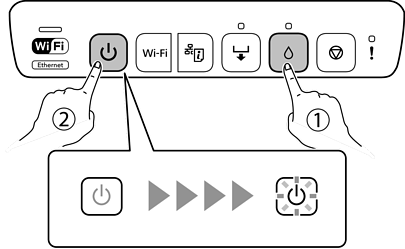 Ha a tápfeszültség jelzőfénye abbahagyja a villogást, nyomtassa ki ismét a fúvóka-ellenőrző mintázatot. Addig ismételje a tisztítást és a minta a nyomtatását, amíg minden sor teljesen kinyomtatásra nem kerül.