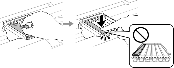 Helyezze be az új tintapatront átlósan a csúcs felőli oldalától, majd óvatosan nyomja a helyére. A helyes behelyezéskor egy kattanást fog hallani.