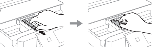 A tintapatron eltávolításához nyomja meg a fület, majd átlósan emelje ki.