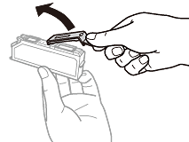 ツメを押して、インクカートリッジを斜めに持ち上げて取り外します。