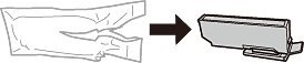 袋から出したインクカートリッジは振らないでください。インクが漏れるおそれがあります。