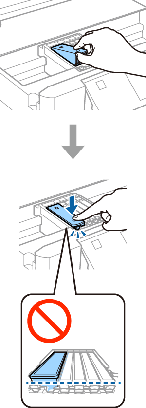 4 將墨水匣斜斜地裝入墨水匣插槽,並輕輕往下壓入定位。重複此步驟以裝入所有墨水匣。