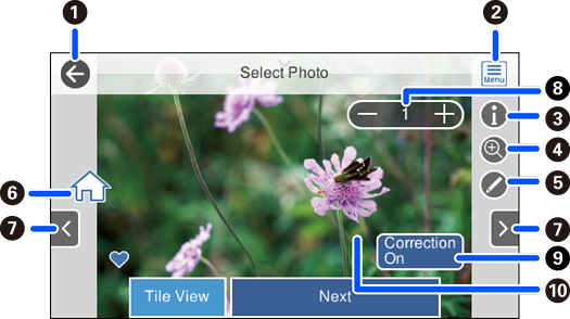Selectați Single View de pe ecranul Selectare fotografie pentru a afișa acest ecran. Aici, puteți vizualiza fotografiile mărite una câte una.