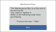 Când cutia de întreținere este plină, nu mai puteți tipări și curăța capul de imprimare decât după înlocuirea acesteia, pentru a evita scurgerile de cerneală. Totuși, puteți să efectuați operații care nu necesită cerneală, cum ar fi scanarea.