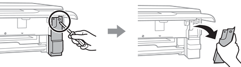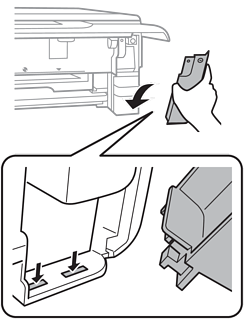 Introduceți extensiile capacului în fante, apoi strângeți șurubul. În cazul în care capacul nu este instalat corespunzător, pot apărea scurgeri de cerneală.