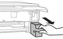 Introduceți cutia nouă în imprimantă, până la capăt.