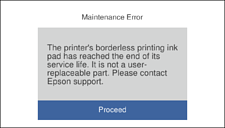 La afișarea următorului ecran, componenta nu poate fi înlocuită de utilizatori. Contactați serviciul de asistență Epson.