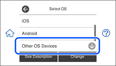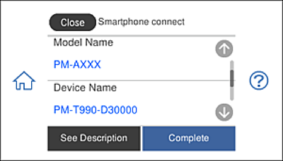 Pentru dispozitivele inteligente care au mai fost conectate la imprimantă, selectați numele rețelei (SSID) de pe ecranul Wi-Fi al dispozitivului, pentru a le reconecta.
