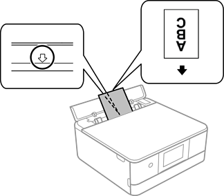 Încărcați hârtia în marcajul central cu săgeată al fantă spate al.hârtie, cu fața pentru tipărit în sus.
