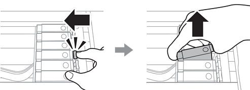 Gurnite jezičak da biste oslobodili držač kertridža sa mastilom, a zatim dijagonalno izvadite kertridž.