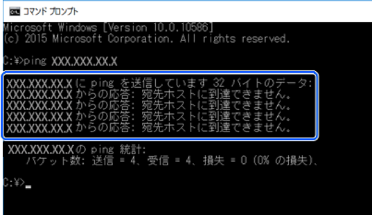「ping xxx.xxx.xxx.xxx」と入力して、Enterキーを押します。