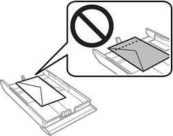 Заредете пликове със страната за печат надолу към предния водач за хартия.