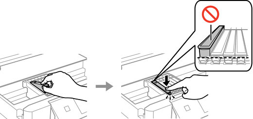 הכנס את מחסנית הדיו באלכסון לתוך מחזיק המחסנית ודחוף אותה בעדינות כלפי מטה עד שהיא תינעל במקומה.