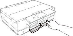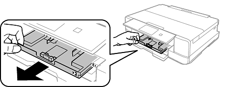 プリンターが動作していないことを確認して、上トレイを引き抜きます。上トレイには目印