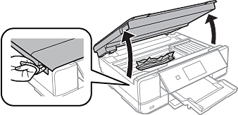 原稿カバーを閉めた状態で、スキャナーユニットを開けます。