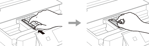 インクカートリッジ挿入部がカートリッジ交換位置に移動します。ただし、数分経つと挿入部が戻ることがあります。その場合は、手順2からやり直してください。