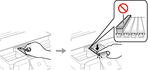 取り外したインクカートリッジは、インク汚れや乾燥を防ぐために、インク供給孔部にキャップを取り付けて保管、廃棄してください。キャップは「カチッ」と音がするまで確実に取り付けてください。