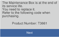 Vykdant kai kuriuos spausdinimo ciklus, priežiūros dėžutėje gali susikaupti nedidelis rašalo perteklius. Kad rašalas nepradėtų tekėti iš priežiūros dėžutės, pasiekus priežiūros dėžutės sugerties ribą spausdintuvas nustoja spausdinti. Keitimo būtinybę ir dažnį lemia išspausdintų puslapių skaičius, spausdinama medžiaga ir spausdintuvo vykdomi valymo ciklai. Kai rodomas pranešimas, raginantis pakeisti priežiūros dėžutę, pasiimkite plokščią atsuktuvą ir vykdykite ekrane rodomas instrukcijas. Tai, kad reikia pakeisti dėžutę nereiškia, kad spausdintuvo veikimas nebeatitinka techninių duomenų. Šio pakeitimo išlaidos pagal „Epson“ garantiją nepadengiamos. Už šią dalį yra atsakingas naudotojas.