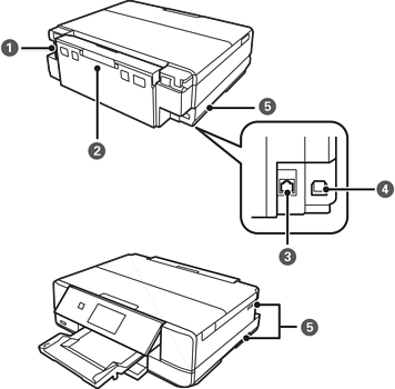 Uwalnia ciepło z wnętrza drukarki. Wloty znajdują się u dołu drukarki po prawej i lewej stronie, a także na prawej stronie drukarki. Umieszczając drukarkę na jej miejscu, nie wolno zakrywać wlotów. |