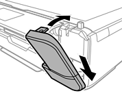 För in flikarna på luckan i skårorna och dra sedan åt skruven. Om luckan inte är korrekt installerad kan bläck läcka ut.