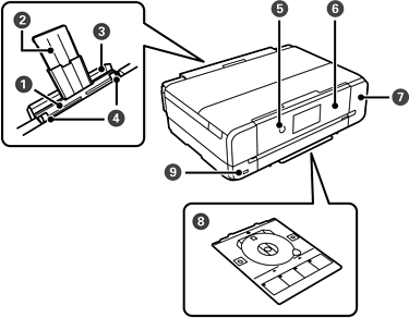 Menampung kertas yang dikeluarkan. Saat Anda mulai mencetak, baki ini akan diperpanjang secara otomatis sesuai dengan ukuran kertas. Jika Anda memilih Yes pada layar yang ditampilkan saat mematikan printer, baki menutup secara otomatis. Untuk menutup baki secara manual, sentuh |