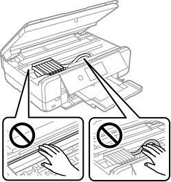 Nikada nemojte dodirivati dugmad na kontrolnoj tabli kada vam je ruka unutar štampača. Ako štampač počne da radi, može izazvati povredu. Da biste izbegli povrede, pazite da ne dodirnete isturene delove.