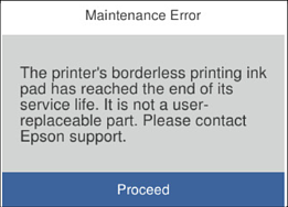 Kada se prikaže sledeći ekran, deo ne može da se zameni od strane korisnika. Kontaktirajte službu za podršku kompanije Epson.