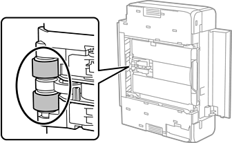 Rengör valsen på insidan när papper från papperskassetten inte matas korrekt från insidan.