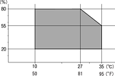 在圖中所示的溫度(°C 或 °F)和濕度(%)範圍內以及無凝結的環境中使用印表機。