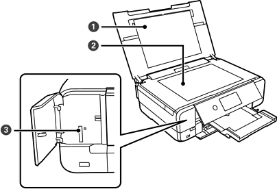掃描放置的原稿。打開以更換墨水匣或移除夾紙。它通常應保持關閉。